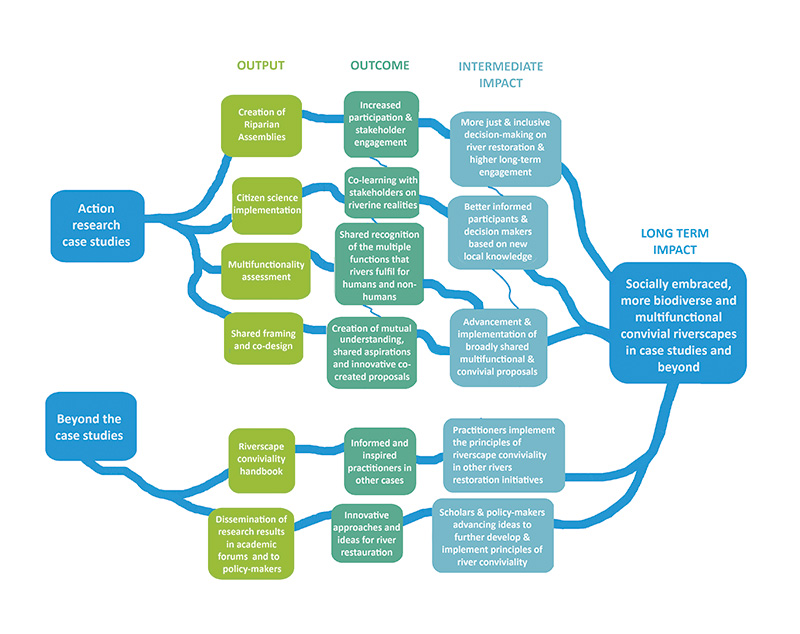 Tanmateix, els projectes de restauració sovint s’enfronten a fortes controvèrsies socials. Els enfocaments descendents i dirigits per experts tendeixen a ignorar els rius com a sistemes socioecològics complexos. RiVIVE té com a objectiu desenvolupar un marc inclusiu i orientat a la justícia basat en la convivialitat del paisatge fluvial, reconeixent els rius com a espais amb múltiples valors, funcions i conflictes.